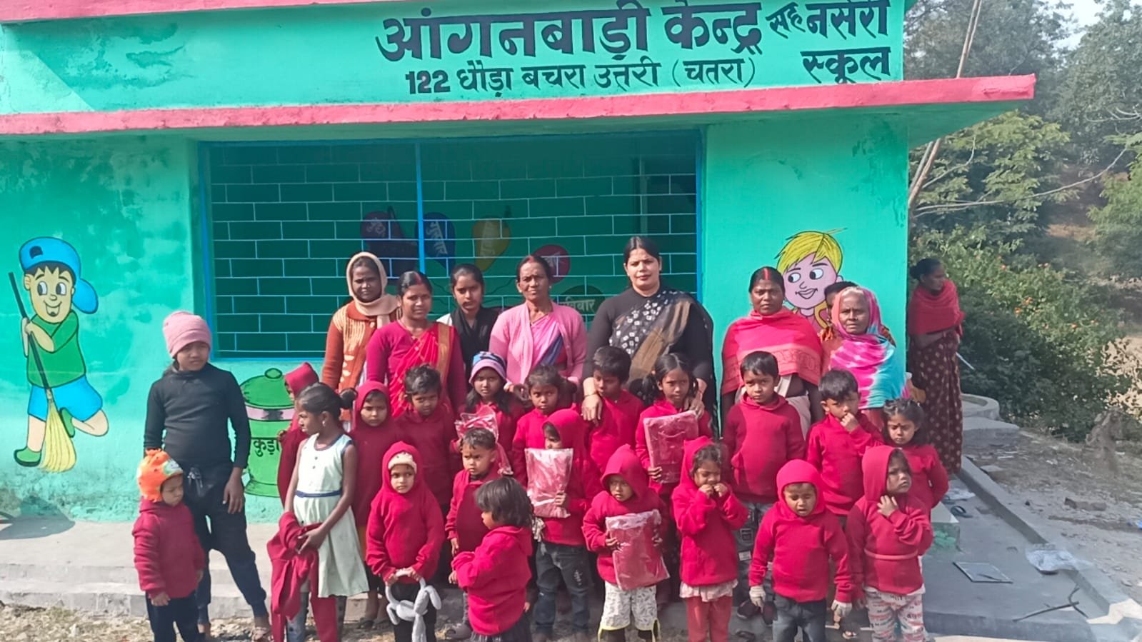 आंगनबाड़ी केंद्र में बच्चों को स्वेटर वितरण