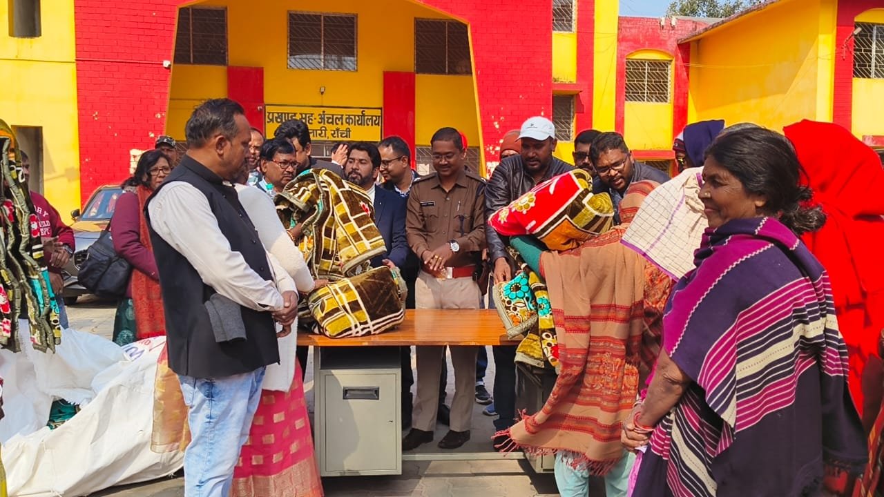 स्वास्थ्य मेला में पड़ रही कड़ाके की ठंड को देखते हुए लोगों के बीच कंबल का वितरण किया गया। मौके पर मौजुद प्रखण्ड प्रमुख सोनी तिग्गा, खलारी बीडीओ सह सीओ प्रणव अम्बष्ट, खलारी थाना प्रभारी इंस्पेक्टर जयदीप टोप्पो, बुढ़मू सीएचसी प्रभारी डॉ. तारिक अनवर, खलारी पीएचसी चिकित्सक डॉ.इरशाद सहित पंचायत के मुखिया एवं जनप्रतिनिधि द्वारा गरीब और असहाय लोगों के बीच कंबल का वितरण किया गया।