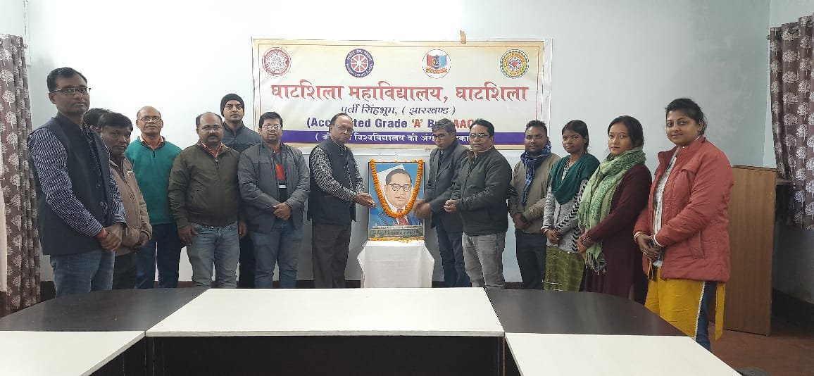 आज बाबासाहेब डॉ भीमराव अंबेडकर की पुण्यतिथि पर घाटशिला महाविद्यालय में एक सभा का आयोजन कर उन्हें श्रद्धांजलि अर्पित की। सभा की अध्यक्षता प्राचार्य डॉ पीके गुप्ता ने किया। कार्यक्रम का संचालन एवं कार्यक्रम परिचिती डॉ दिलचंद राम ने किया। धन्यवाद ज्ञापन डॉ संदीप चंद्रा ने किया। सर्वप्रथम सभी शिक्षकों और कर्मचारियों ने बाबा साहब के तस्वीर पर माल्यार्पण एवं पुष्पांजलि देकर श्रद्धांजलि अर्पित किया। डॉ दिलचंद राम ने अपने वक्तव्य में कहा कि बाबा साहब का योगदान पूरा देश कभी नहीं भूलेगा। एक सशक्त और प्रज्ञावान समाज के निर्माण में अपनी भूमिका निभाकर ही बाबा साहब को सच्ची श्रद्धांजलि दे सकते हैं।
