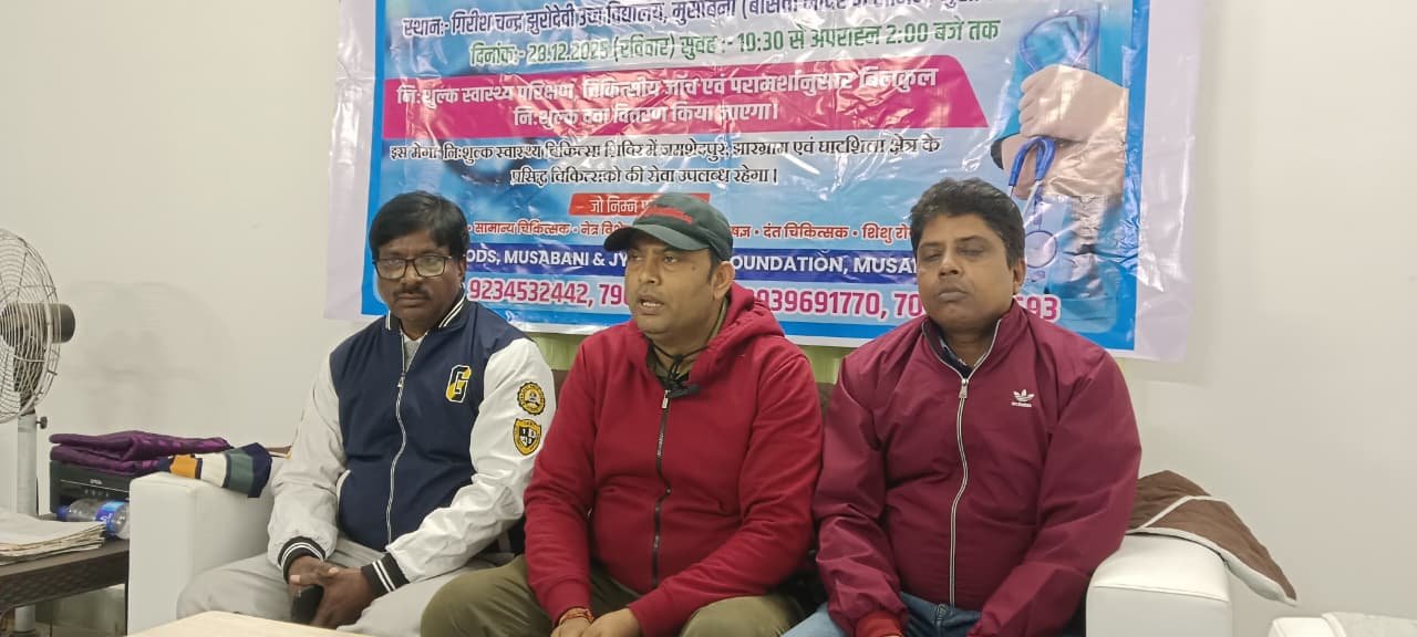 मुसाबनी:-द लिली फाउंडेशन ऑफ इंडिया के तत्वावधान में एक दिवसीय मेगा निःशुल्क स्वास्थ्य चिकित्सा शिविर का आयोजन 28 दिसंबर 2025 (रविवार) को गिरीश चन्द्र झुरो देवी उच्च विद्यालय में किया जा रहा है। यह शिविर सुबह 10:30 बजे से अपराह्न 2:00 बजे तक आयोजित होगा।