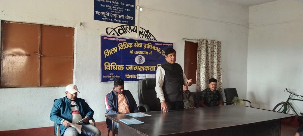 जिला विधिक सेवा प्राधिकार के तत्वाधान में प्रधान जिला एवं सत्र न्यायधीश सह जिला विधिक सेवा प्राधिकार के अध्यक्ष शेषनाथ सिंह के निर्देश पर नगरनबी पंचायत भवन में दिव्यांगजनों के अधिकारों और लाभ पर विधिक जागरूकता शिविर का आयोजन किया गया। कार्यक्रम में दिव्यांगजनों से संबंधित उनके हित में उनके अधिकार के बारे में जानकारी दी गई। लीगल एड डिफेंस कॉन्सिल सिस्टम के डिप्टी चीफ मो. नुकुमुद्दीन शेख ने संविधान में निहित दिव्यांगजनों के कानूनी अधिकारों और दिव्यांग व्यक्ति अधिकार अधिनियम 2016 के बारे में व्यापक जानकारी दी। साथ ही दिव्यांगजनों, उनके परिवारों और समाज को कानूनी अधिकारों, सरकारी योजनाओं, वित्तीय सहायता (जैसे ऋण), और कौशल विकास के अवसरों के बारे में जागरूक किया गया। लीगल एड डिफेंस कॉन्सिल सिस्टम के सहायक गंगाराम टुडू ने जिला विधिक सेवा प्राधिकार से मिलने वाले निःशुल्क कानूनी सहायता, दिव्यांगजनों के हित में विधिक सेवा एवं पेंशन, छात्रवृति, उपकरण समेत वित्तीय सहायता का लाभ लेने को लेकर आवश्यक दस्तावेज प्रक्रिया पर जागरूक की गई ताकि सरकारी योजनाओं से योग्य दिवांगजनों को जोड़ा जा सके। शिविर के माध्यम से मौके पर वंचित दिव्यांगजनों का आवेदन प्राप्त किया गया। जिसमें दिव्यांग पेंशन, व्हील चेयर, दिव्यांग सर्टिफिकेट मामलों से संबंधित आवेदन रहा। मौके पर पंचायत के मुखिया मनोज किस्कू, पंचायत सहायक लक्ष्मण मंडल, पैरा लीगल वॉलिंटियर्स चन्द्र शेखर घोष, खुदू राजवंशी उपस्थित थे।
