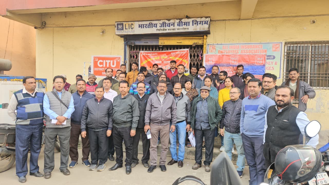बिरला शाखा में बीमा कानून संशोधन विधेयक के विरोध में प्रदर्शन