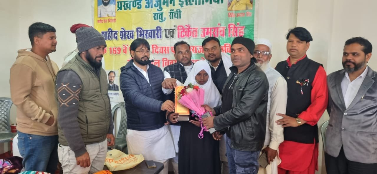रातु। स्वतंत्रता संग्राम के महानायक शहीद शेख भिखारी व टिकैत उमराव सिंह के 169 वें शहादत दिवस पर गुरुवार को रातु प्रखंड अंजुमन कमेटी की ओर से काठीटांड, अलकमर कॉलोनी, फुटकलटोली व अन्य मदरसों के बच्चो के बीच 100 से अधिक कंबल का वितरण किया गया। फुटकलटोली स्थित कमेटी के कार्यालय में आयोजित कार्यक्रम को कमिटी के सदर अत्ताउल्लाह अंसारी, सेकेट्री अनिसुल रहमान, नायब सेकेट्री मोख्तार अंसारी, सेकेट्री अंजुम खान, नौशाद आलम, एडवोकेट सरफराज आलम, प्रगति मानव सहयोग समिति के अध्यक्ष असलम अंसारी, पूर्व सेकेट्री कुदूस अंसारी, मुंतजिर खान, व मदरसा के शिक्षकों ने संबोधित किया व सतंत्रता सेनानी शेख भिखारी व टिकैत उमराव सिंह को श्रद्धांजलि अर्पित कर उन्हें याद किया और उनके जीवनी पर प्रकाश डाला उनके आदर्शों पर चलने की बात कही। इस बीच कमिटी के लोगो ने दहेज प्रथा, यतीम बच्चे,तलाक सुदा व विधवा महिला, कोर्ट कचहरी में मुकदमे में फंसे लोगों की मदद करने, शादी विवाह व निकाह को आसान करने, बारात में कम लोगो को शामिल करने, युवाओं का नशा की ओर बढ़ते कदम की रोकथाम के अलावा कौम के हालात पर चर्चा किया । वही रातु प्रखंड अंतर्गत बनापीडी की रहने वाली केरला में आयोजित चार हजार बच्चो के बीच हुई परीक्षा में प्रथम स्थान लाने वाली छात्रा मारिया सदब को बुके व मोमेंटो देकर सम्मनित किया व हौसला अफजाई की गयी। उनके अभिवाहक को भी शॉल ओढ़ाकर पुरस्कृत किया गया। कार्यक्रम से पूर्व कमिटी की ओर से कार्यक्रम में शामिल अतिथियों का बुके देकर स्वागत किया गया। व बच्चो के द्वारा कुरान की तिलावत कर कार्यक्रम की शुरुआत की गई। । एडवोकेट सरफराज आलम ने कमिट के लोगो को प्रखंड अंजुमन इस्लामिया कमिटी का रजिस्ट्रेशन कराकर बायलॉज सौंपा। कार्यक्रम की सफलता में अंजुमन कमेटी के लोगो के अलावा जेयाउल हक , सिंदबाद खान, जुमाउद्दीन अंसारी,मौलाना परवेज, के अलावा दर्जनो लोगो का महत्वपूर्ण योगदान रहा। कार्यक्रम की अध्यक्षता अत्ताउल्लाह अंसारी व संचालन अनिसुर रहमान ने किया ।