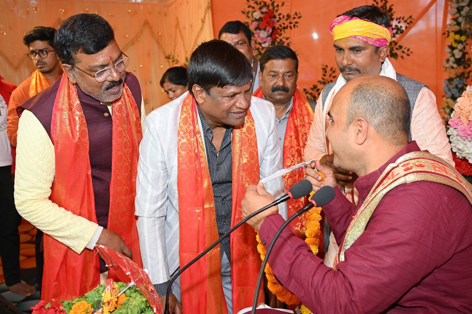 पतरातू । पीटीपीएस पतरातू स्थित विधायक के आवासीय कार्यालय परिसर में आयोजित श्रीमद् भागवत महापुराण ज्ञान यज्ञ सप्ताह के सातवें दिन शनिवार को भगवान कृष्ण और सुदामा चरित्र , सुभद्रा हरण और परीक्षित मोक्ष कथा प्रसंग सुनकर भाव विभोर हो गए। विधायक रोशन लाल चौधरी ने अपने पूरे परिवार के साथ गणपति आदि देवताओं का विधिवत पूजन किया। इसके बाद सैकड़ो श्रद्धालुओं ने वैदिक विद्वानों की ओर से प्रस्तुत किए गए भागवत पारायण का श्रवण किया। प्रसंग में मित्रता प्रेम और त्याग के महत्व को समझाया गया । सुदामा चरित्र का वर्णन करते हुए कथा व्यास सत्यप्रकाश तिवारी (शंख बाबा) कथा प्रसंग में भगवान श्री कृष्ण द्वारा मित्र सुदामा का आदर सत्कार और उनके चावल को स्वीकार करना सच्ची मित्रता और निस्वार्थ प्रेम को दर्शाता है। सुभद्रा हरण में अर्जुन द्वारा सुभद्रा का हरण और श्री कृष्ण के आशीर्वाद से उसका विवाह दिखाया जाता है जो प्रेम और मर्यादा का संदेश देता है। दूसरी और कार्यक्रम के दौरान ही लोकसभा सांसद ढुल्लू महतो और हजारीबाग के सांसद मनीष जायसवाल पहुंचकर पूजन और आरती में शामिल हुए। यजमान विधायक रोशन लाल चौधरी की ओर से प्रतीक बसंत और श्रीमद् भागवत गीता देकर स्वागत किया गया। श्रद्धालुओं के बीच विधायक रोशन लाल चौधरी ने अपने हाथों से प्रसाद का वितरण किया। पूरा पंडाल उत्सव के माहौल में डूब गया और श्रद्धालु भक्ति रस में झूमते नाचते नजर आए। ऐसी मान्यता है कि आज के कथा के श्रवण से जीवन सफल होता है और मोक्ष की प्राप्ति होती है जिससे सभी का कल्याण होता है। पुणे से पधारे प्रसिद्ध कथावाचक श्री सत्य प्रकाश तिवारी( शंख बाबा )के मुखारविंद से निकली उनकी वाणी में आध्यात्मिकता भक्ति अभियान से श्रद्धालुओं को दिव्य और शांति में वातावरण प्रदान करने वाला अद्भुत संगम प्राप्त हुआ। मौके पर पीवीयूएनएल सीईओ अशोक कुमार सहगल डॉ संजय सिंह रणंजय कुमार उर्फ कुंटू बाबू प्रवीण मेहता विवेकानन्द सिंह दिलीप दांगी रंजन सिंह फौजी महेंद्र प्रजापति राजू कुशवाहा दिनेश प्रसाद महामंत्री राजूचतुर्वेदी सत्येंद्र नारायण सिंह राजीव जायसवाल रंजीत पांडे जिला पार्षद राजाराम प्रजापति मनोज राम राकेश सिन्हा संतोष शर्मा प्रवीण सोनू अजय पासवान सोनू कुमार शौर्य रंजन भगत किशोर महतो पंकज गुप्ता धर्मेंद्र सिंह मुन्ना सिंह राहुल कुमार चंदन कुमार हरि रत्नम साहू अरविंद साहू चंद्रशेखर चौधरी विजय जायसवाल अनिल राय वारिस खान प्रोफेसर संजय सिंह सुखदेव प्रसाद दीनदयाल कुमार लक्ष्मी देवी वारिस खान रूपा देवी नूतन महतो निरंजन कुमार आदि शामिल रहे।