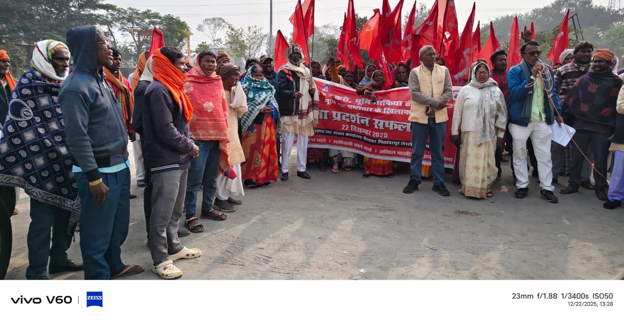 नीलांबर पीतांबरपुर इकाई के बैनर तले सैकड़ों कार्यकर्ताओं ने सोमवार को गांधी चौक से रैली निकालकर प्रखंड सह अंचल कार्यालय के समक्ष जोरदार आक्रोशपूर्ण प्रदर्शन किया। प्रदर्शन शांतिपूर्ण लेकिन दृढ़ संकल्प के साथ संपन्न हुआ।कार्यक्रम की अध्यक्षता भाकपा (माले) नीलांबर–पीतांबरपुर प्रखंड सचिव कामरेड कमेश सिंह चेरो ने की। मुख्य वक्ता के रूप में भाकपा (माले) झारखंड राज्य स्थायी कमेटी के सदस्य एवं अखिल भारतीय किसान महासभा के झारखंड प्रदेश अध्यक्ष कामरेड बी.एन. सिंह उपस्थित थे।अपने संबोधन में कामरेड बी.एन. सिंह ने केंद्र सरकार द्वारा मनरेगा का नाम बदले जाने को राष्ट्रपिता महात्मा गांधी का घोर अपमान बताया। साथ ही उन्होंने झारखंड की हेमंत सरकार पर अपने वादों से मुकरने का आरोप लगाया। उन्होंने कहा कि अंचल कार्यालय और जनप्रतिनिधियों के संरक्षण में भूमि माफियाओं का मनोबल बढ़ा है, जिसे किसी भी हाल में बर्दाश्त नहीं किया जाएगा।उन्होंने चेतावनी दी कि जब तक गरीबों, किसानों और मजदूरों के पक्ष में ठोस कार्रवाई नहीं होती, तब तक आंदोलन और तेज किया जाएगा। उन्होंने कहा कि लूट अपने चरम पर है और केंद्र व राज्य सरकारें इसे खुली छूट दे रही हैं। बिना संघर्ष के न्याय संभव नहीं है।प्रदर्शन के दौरान अंचलाधिकारी को 11 सूत्री मांग पत्र सौंपा गया। इस मौके पर कामरेड शिवनाथ महतो, छोटू कुमार मेहता, अनुज पासवान, कालो देवी, गुड्डू भुइयां, कुलवंती देवी, श्यामलाल पासवान, चनारीक भुइयां, इंद्रजीत राम, एपवा नेत्री कविता सिंह, कामरेड उस्मान, जितेंद्र सिंह चेरो सहित कई नेताओं ने सभा को संबोधित किया।