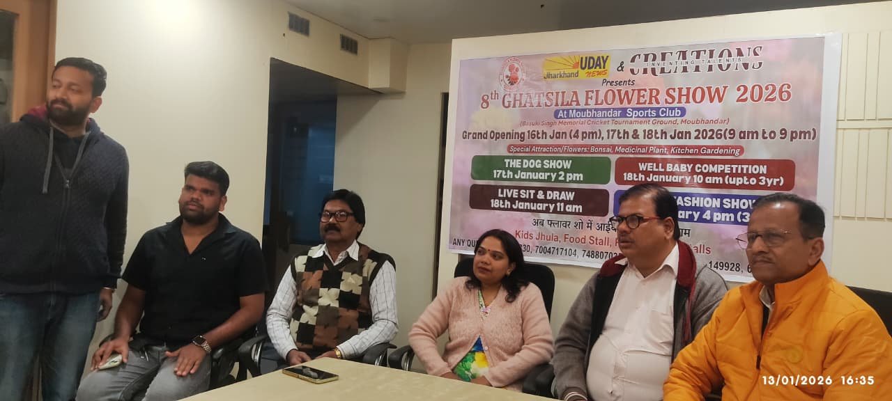 आठवां घाटशिला फ्लावर शो 16 से 18 जनवरी को स्पोर्ट्स क्लब मैदान में होगा आयोजित. फ्लावर शो के साथ ही डॉग शो वेल बेबी शो लाइफ सीट एंड ड्रॉ और किड्स फैशन शो भी होगा आयोजित. झारखंड उदय न्यूज़ क्रिएशंस और घाटशिला फ्लावर शो कमेटी के संयुक्त तत्वावधान में 16 से 18 जनवरी 2026 को आठवें घाटशिला फ्लावर शो का आयोजन स्पोर्ट्स क्लब मैदान में मऊभंडार में होगा.